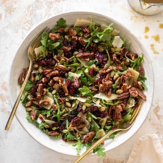 This is the thanksgiving salad to make for your holiday meal! It’s simple and easy, with the nuts and dressing being made ahead of...