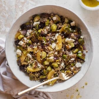 This brussels sprouts farro bowl is the perfect winter meal. Toasted farro, roasted brussels sprouts with pine nuts and citrus and feta, all drizzled...