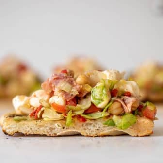 This italian chopped salad pizza is one of my favorite things to make! Chewy, tangy sourdough pizza crust topped with a zesty chopped salad...