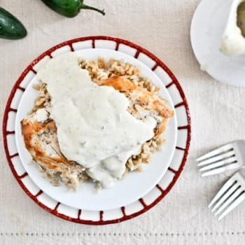 Caramelized Chicken with Jalapeno Cream serves 4 4 boneless, skinless chicken breasts 1 teaspoon salt 1 teaspoon pepper 2 tablespoons canola oil 2 jalapenos,...