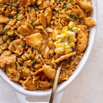 This scalloped corn is the perfect holiday side dish! Creamy, creamy and crunchy, it’s baked until warm and bubbly and cheesy, then topped with...