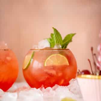 This merry cherry lime ginger beer nonalcoholic drink is super delicious and festive! Made with ginger beer, maraschino cherry juice, freshly squeezed lime juice...