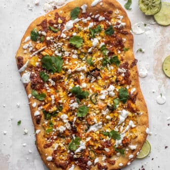 Street corn pizza is topped with chili lime spiced chicken, jalapeño peppers, crumbled cotija cheese and lots of fresh lime. It’s crisp and crunchy,...