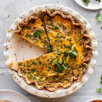 This pimento cheese quiche is delicious served warm or cold! Flaky crust covered with everything seasoning, filled with pimento cheese, fresh herbs and scallions....