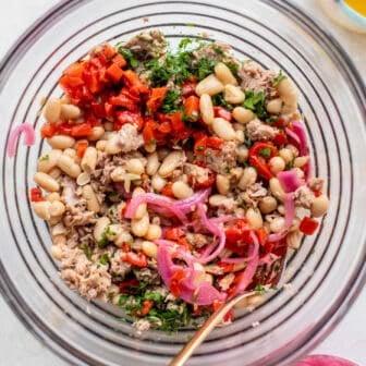 This white bean tuna salad is loaded with fresh herbs, roasted red peppers and pickled onions. Dressed in a tangy olive oil dressing and...
