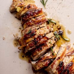 Garlic Brown Sugar Bacon Wrapped Pork Tenderloin.