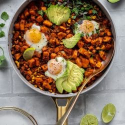 Chipotle Sweet Potato and Quinoa Breakfast-For-Dinner Skillet.