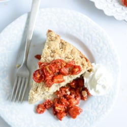 Vanilla Cornmeal Crumb Cake with Candied Cherry Tomatoes.