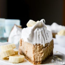 Peanut Butter Cheesecake with Whipped Marshmallow and Bananas.