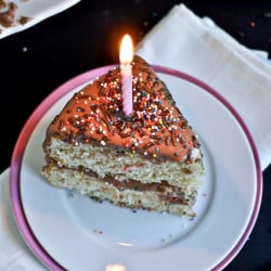 Yellow Birthday Cake with Mother Lovett’s Fudge Frosting.