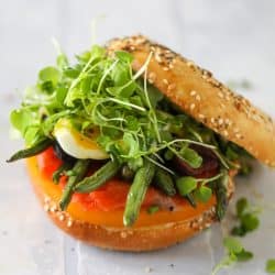 Nicoise Bagelwiches with Blistered Garlic Green Beans.