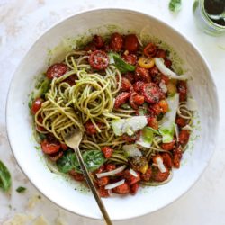 Grilled Vegetable Orzo with Smashed Feta Vinaigrette.