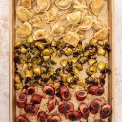 Sheet Pan Pierogi, Smoked Sausage & Brussels Sprouts.