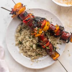 Grilled Hot Honey BBQ Smoked Sausage Skewers.