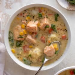 Summer Salmon Tacos with Grilled Corn and Poblano Peppers.