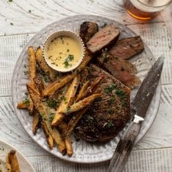 Our Favorite Skillet Seared Steak with Fries and Honey Dijon Aioli!