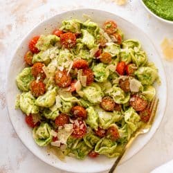 Crispy Sausage and Asparagus Farfalle with Burrata.